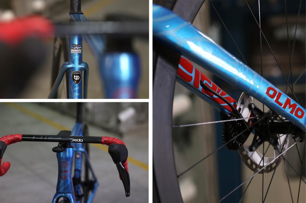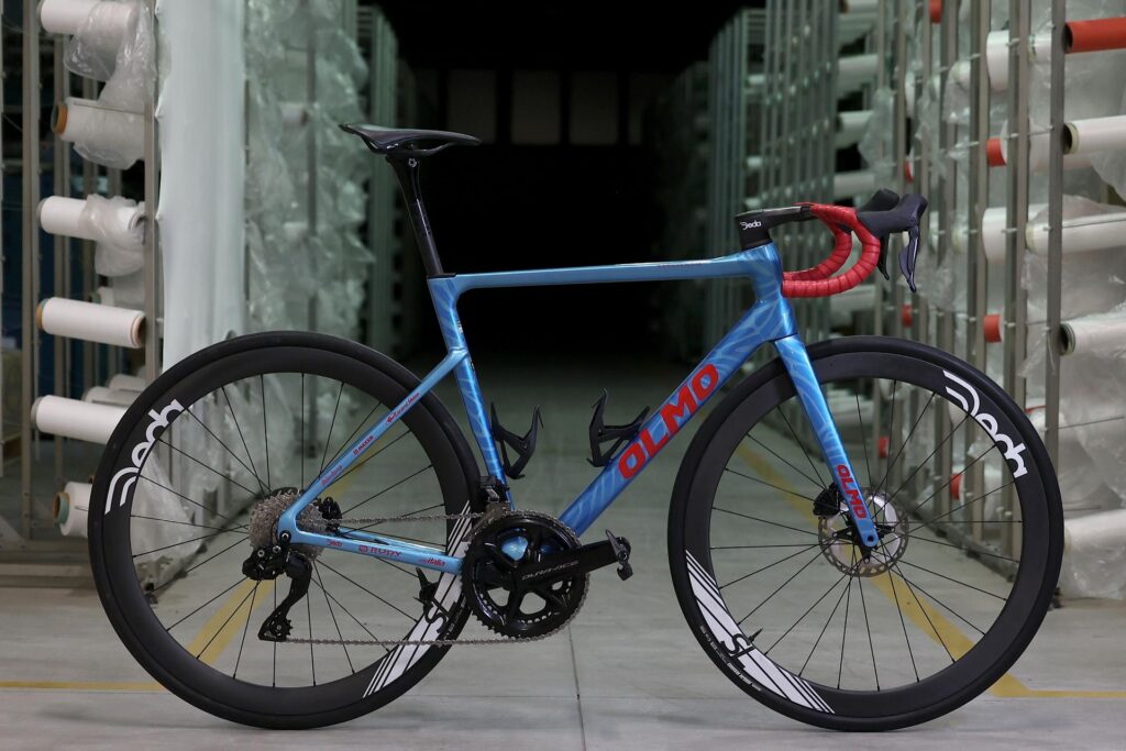 La bicicletta da corsa, realizzata dal brand italiano Olmo, con telaio monoscocca in carbonio ultraleggero che ha già regalato tante soddisfazioni al team trevigiano nel 2025, sarà presente in gruppo in una “team edition” pensata appositamente per riprendere i colori e le texture della nuova divisa della formazione trevigiana.